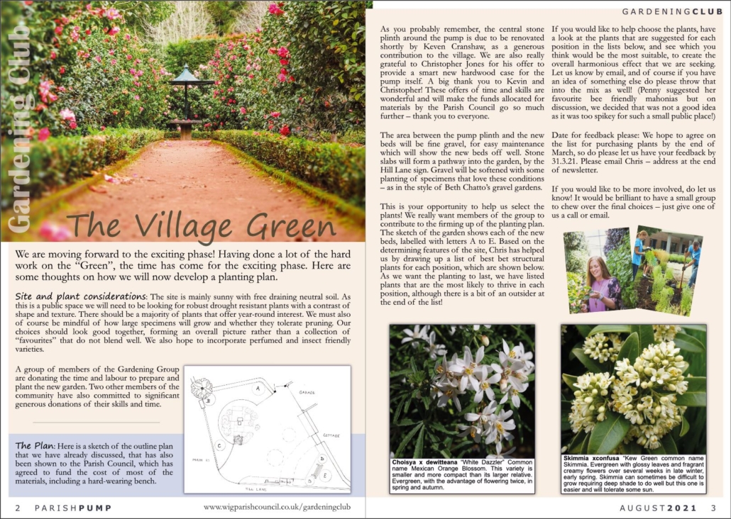 Social Committee and Gardening Club will use the Parish Pump to reach every household and inform us of the amazing work they are doing for our community.