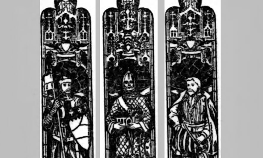 Beneath each figure is a space recording the names and titles, together with the dates of their respective deaths, A.D. 1119, 1202, and 1550. In the canopy above are the family arms with their supporters, and at the bottom of the window is use following inscription, “To the glory of God and in memory of Ascelin Gouel de Perceval, the founder of this church; James, the re-builder; and Richard, who fought in the Holy Wars. This window is dedicated by their descendants A.D. 1908.”